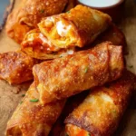 A fun and tasty twist on traditional egg rolls, combining classic buffalo chicken flavors with a crispy outer layer.