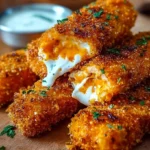 Crispy buffalo chicken mozzarella sticks that blend spicy chicken with gooey cheese, perfect for snacks or game day.