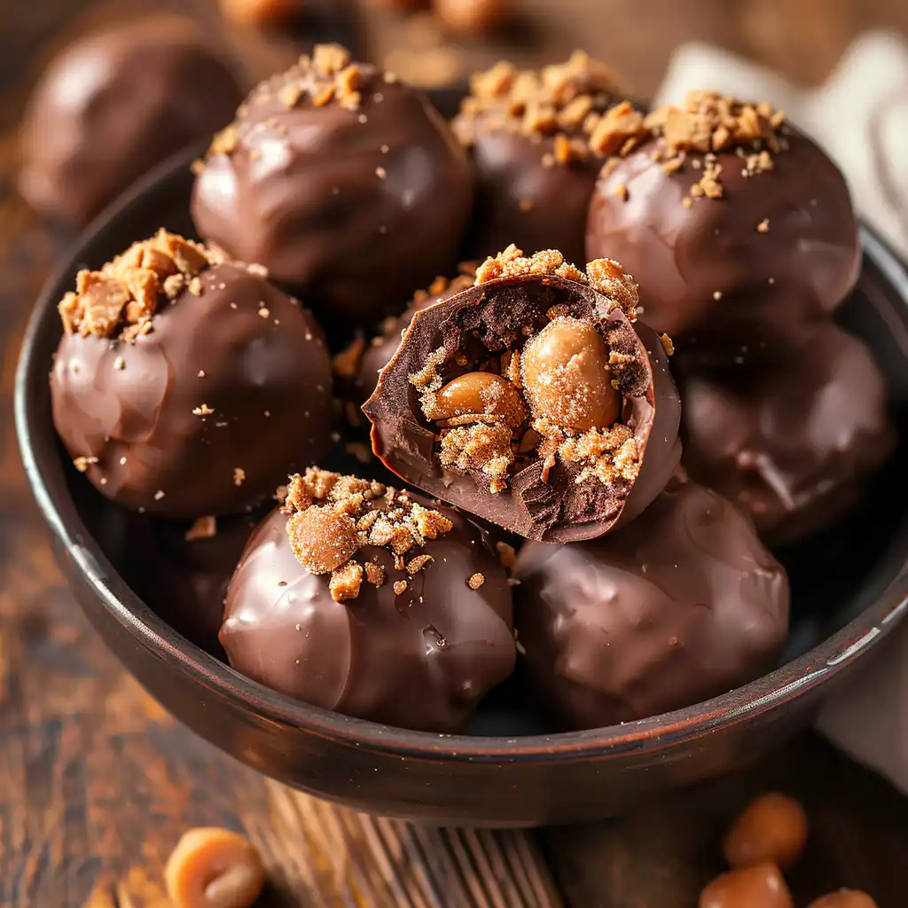These little chocolate-coated bites combine peanut butter, crushed Butterfinger candy bars, and powdered sugar for a treat that’s crunchy on the inside and smooth on the outside. The best part? No baking required. If you’re short on time but craving something sweet, this recipe will be your new go-to.
