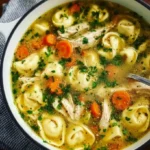 A comforting soup packed with tender chicken, veggies, and cheesy tortellini, perfect for chilly days.