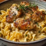 A comforting dish featuring tender chicken served over buttery egg noodles, perfect for busy weeknights.