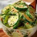 Creamy Asian cucumber salad bowl with fresh ingredients and vibrant colors