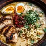 A comforting and flavorful ramen dish with creamy broth and tender chicken, perfect for busy nights.