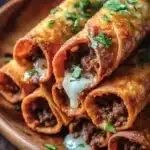Delightful and crispy taquitos filled with seasoned beef and gooey cheese, perfect for snacks or meals.
