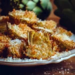 Delicious and crispy artichoke hearts coated in Parmesan and panko breadcrumbs, perfect as a snack or appetizer.