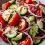 This Cucumber Tomato Salad features fresh cucumbers, juicy tomatoes, and red onion, all tossed in a tangy dressing. It is quick, easy, and perfect as a light meal or side dish.