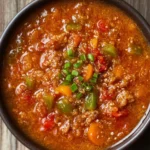 Keywords: stuffed pepper soup, high protein soup, healthy soup, meal prep, comfort food
