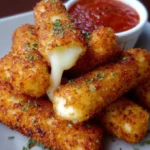 Serve these mozzarella sticks hot and crispy. Place them on a platter with a bowl of homemade marinara sauce for dipping. They are perfect for parties, game days, or a fun family snack.