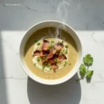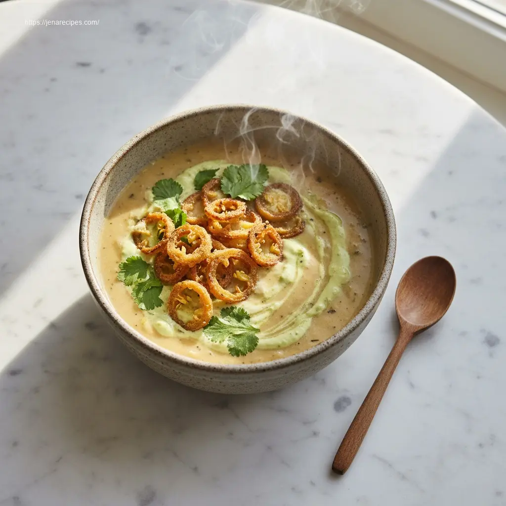 Creamy, cheesy potato soup infused with jalapeño popper flavors – rich, comforting, and slightly spicy with crispy toppings.