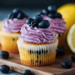Delightful lemon cupcakes topped with a fresh blueberry buttercream, perfect for any occasion.