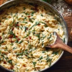To store leftovers, let the orzo cool completely, then transfer it to an airtight container. Keep it in the refrigerator for up to 3 days. To reheat, simply warm it on the stove or in the microwave, adding a splash of broth to restore the creaminess.