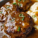 A comforting Salisbury steak recipe featuring seasoned beef patties cooked in a rich gravy, perfect for a hearty dinner.