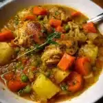 A comforting and hearty chicken stew perfect for chilly days, made with tender chicken, colorful vegetables, and flavorful broth.