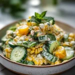 Street Corn Creamy Cucumber Salad is perfect for summer. It brings together the sweetness of fresh corn and the crunch of cucumbers, creating a refreshing and colorful dish. This salad is packed with flavor and is a great way to enjoy fresh, seasonal ingredients. It can be a side dish or a light main course, making it versatile for any meal.