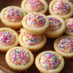 Delightful sugar cookie cups filled with creamy frosting and topped with colorful sprinkles, perfect for any occasion.