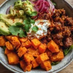 A vibrant and nutritious Sweet Potato Taco Bowl that’s perfect for busy weeknights, featuring roasted sweet potatoes, seasoned beef, and fresh toppings.