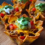 Taco cups are a fun and easy way to enjoy the flavors of tacos in a bite-sized form using wonton wrappers, seasoned ground beef, and melted cheese.